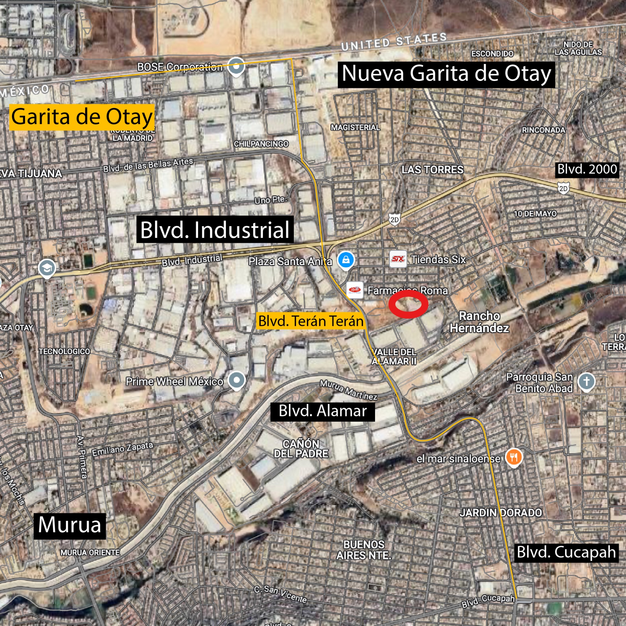 A solo 5 km de la línea fronteriza de Otay (6 min).